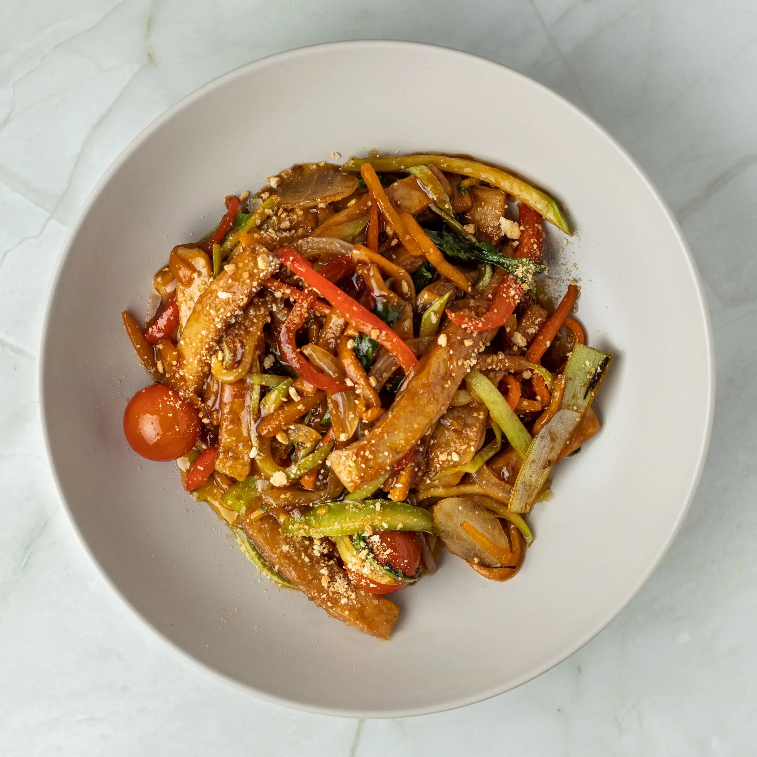 Wok de tiras Heura en salsa teriyaki